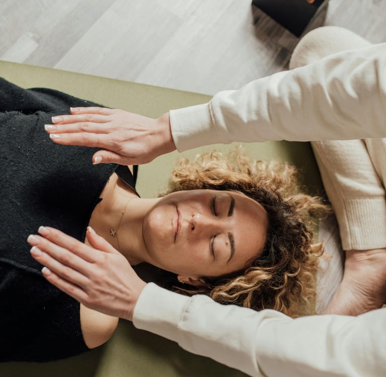 Menschen, die Stress abbauen möchten und nach einer intuitiven Praxis suchen, um sich zu entspannen.